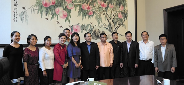 国家新闻出版广电总局国际合作司副司长周继红(左六)与老挝记者研修团合影 张阳 摄