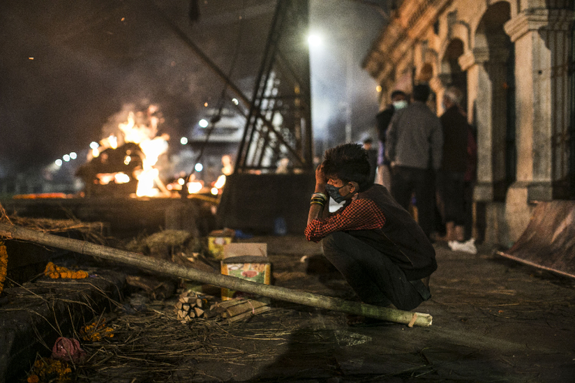 4月29日,尼泊尔加德满都,深夜的马蒂河畔,遇难者遗体在这里火化。