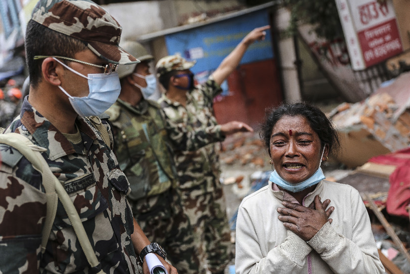 5月2日,尼泊尔加德满都,得知多名亲人遇难的Pashpa伤心欲绝。