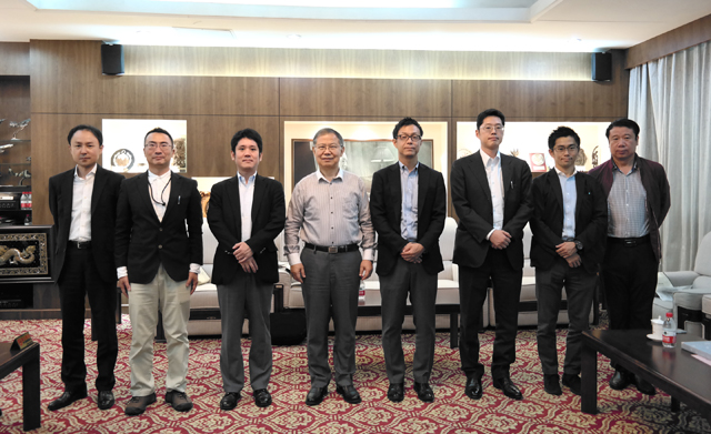 中国记协书记处书记祝寿臣(左四)与日本新闻代表团合影 张阳 摄