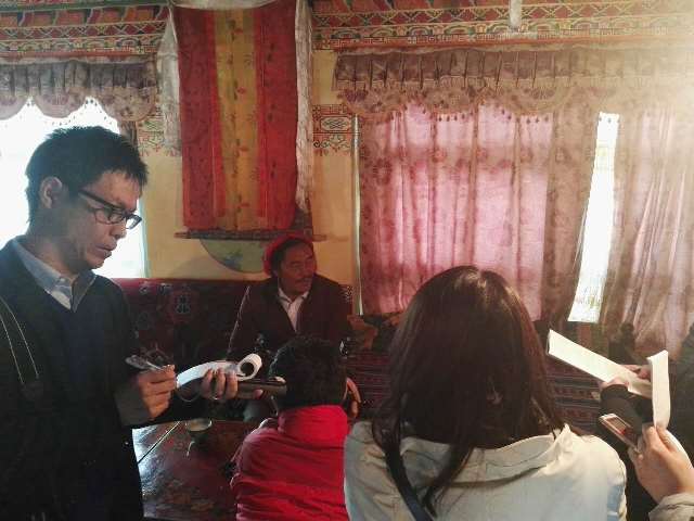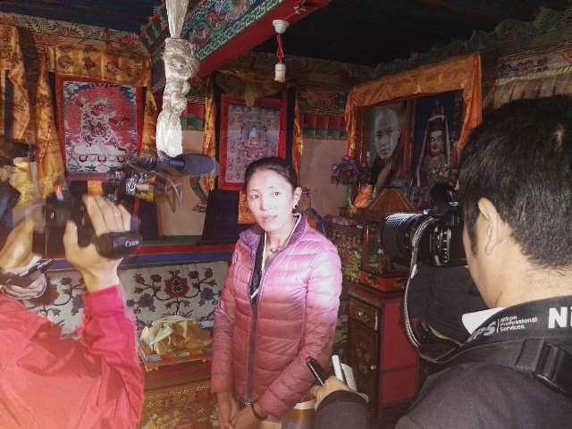 日本新闻代表团在拉萨市当雄县宁中乡曲才村藏民仁青旺姆家进行现场采访 马玉安 摄