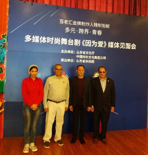 山东杂技团团长姚建国(右二)会见埃及新闻代表团 张炳顺 摄