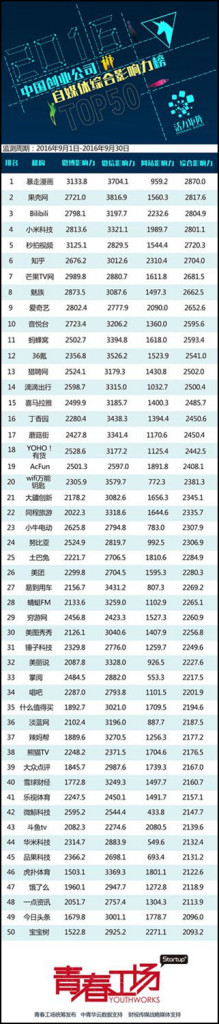 10月19日,专注于创业公司自媒体传播力监测的《活力矩阵·中国创业公司自媒体影响力榜》公开发榜,暴走漫画、果壳网、知乎分别荣膺当月微博综合实力、微信综合实力与网站综合实力指数排行冠军。