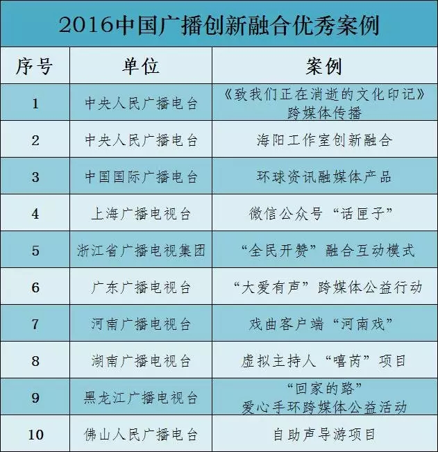 编者按:10月25日,2016上海广播节·中国广播创新融合案例发布。这些从全国近50家省市级电台提供的240多个案例中评选产生的优秀案例,或从技术突破,或从市场入手,或从体制转变,推动着中国广播的融合转型发展,形成一股创新融合的力量。今天,我们一起分享这些典型优秀案例的成功经验和有益探索。