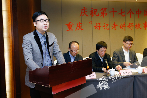 今(8)日是第十七个中国记者节,重庆的记者编辑们是怎么过节的?大多数人都在采访路上,满怀激情地忙碌着,还有一部分人聆听了一段感人的故事,收获了一份难得的喜悦。这一切都发生在今日上午举行的重庆市庆祝第十七个中国记者节座谈会暨重庆“好记者讲好故事”首场巡讲活动上。
