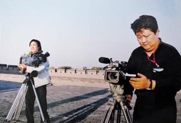 尚晓东(右)与他的同事在纪录片拍摄现场。李少平 摄