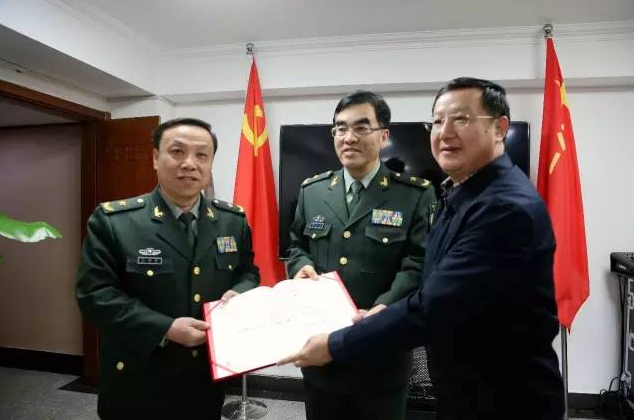 中国记协党组书记、常务副主席胡孝汉(右)到解放军报社慰问因公殉职的夜班编辑马越舟同志的家属。图为胡孝汉与解放军报社社长李秀宝(中)、总编辑孙继炼合影 冯振宇 摄