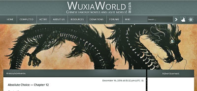 Wuxiaworld阅读网站的首页截图 资料图片