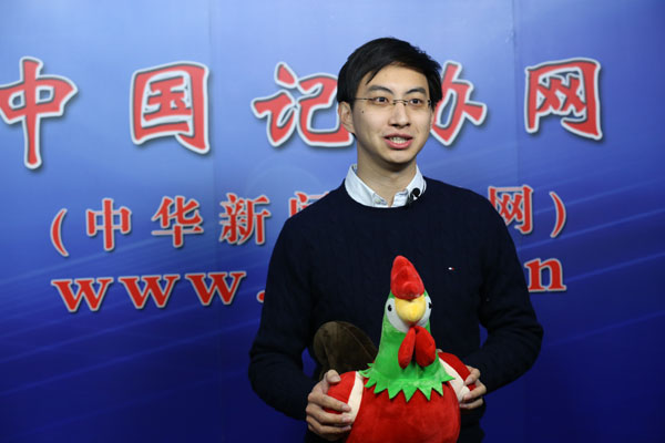 1月19日,中国记协举行2017年中外新闻界新春联谊会。图为经济日报社记者白云飞接受采访并送上新春祝福。冯振宇 摄