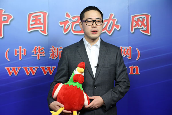 1月19日,中国记协举行2017年中外新闻界新春联谊会。图为上海文汇报记者朱宁接受采访并送上新春祝福。冯振宇