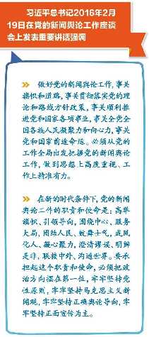 习近平总书记在“2·19”重要讲话中,用“高举旗帜、引领导向,围绕中心、服务大局,团结人民、鼓舞士气,成风化人、凝心聚力,澄清谬误、明辨是非,联接中外、沟通世界”等48个字,对新的时代条件下党的新闻舆论工作的职责和使命,作出了集中鲜明的概括,具有极强的时代特点和指导意义。当前最重要的是,我们要一如既往地牢记光荣使命、神圣职责,坚决落实好贯彻好“48个字”,推动新闻舆论工作可持续地健康发展,为实现“两个一百年”的奋斗目标作出应有贡献。