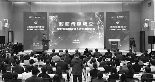 封面传媒成立仪式上面向全球招募人才。华西都市报社 供图