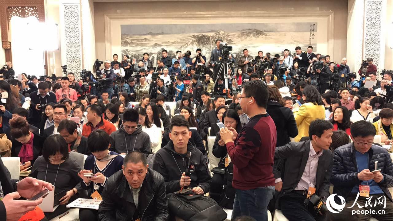 这间位于人民大会堂一层的发布厅,是人民大会堂为了这场发布会准备的。明亮的大厅目测有300余平米,但面对四五百记者的参与,这“作战”面积确实不够用。据全国两会新闻中心负责人介绍,截至目前,已有3000多名记者报名参会。