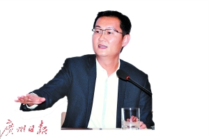 马化腾在发布会上答记者问。图/广州日报全媒体记者骆昌威、黎旭阳