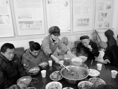 土棚村的拍摄到中午1点半才基本结束。石板屋顶的雪渐渐融化,从冷刺骨到暖洋洋,整个摄制团队才放松下来。村子里给准备了油炸麻叶和鸡蛋汤,先紧着盲艺人吃,让他们靠在南墙根稍事休息。条件所限,摄制团队要轮流吃饭,亚妮和几个摄像最后就餐,就一人一碗汤,两块麻叶,在并不宽绰的院子当间,或站或蹲,与当地村民并无二致。