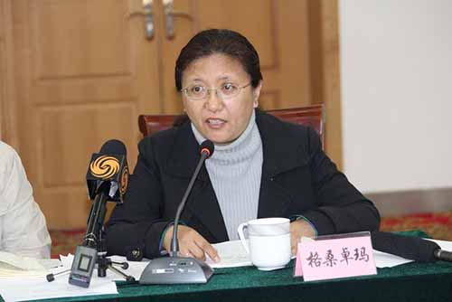 中国藏学研究中心社会经济所负责人格桑卓玛回答记者提问 刘瑞 摄