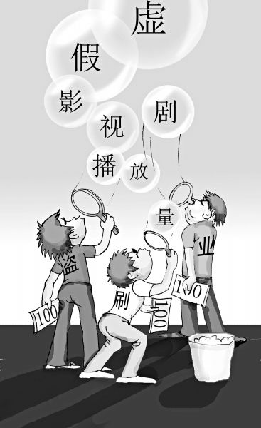 电视剧在视频网站的惊人播放量频频被质疑造假。 漫画/王鹏