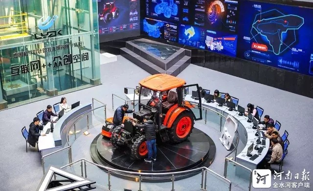 3月6日,在洛阳伊滨区中科信息产业研究院“互联网++众创空间”,智能车辆研究团队正在检测刚刚下线的智能拖拉机。 聂冬晗 摄