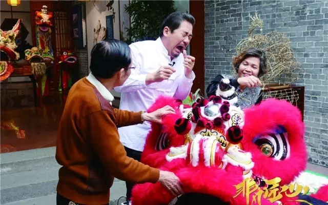 张国立跟随“黎家狮”传人学习扎狮技艺,被竹刺扎中手指