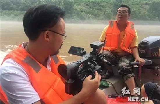 ▲7月2日,湖南广播电视台都市频道记者李中、摄像粟章在湘江长沙段采访。