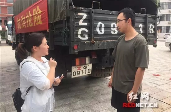 ▲7月1日,国防科大毕业生赴桃江抗洪筑堤事迹刷爆朋友圈,当天下午红网时刻新闻记者王诗颖(左)在桃江采访了参与此次行动的学员卢晓。