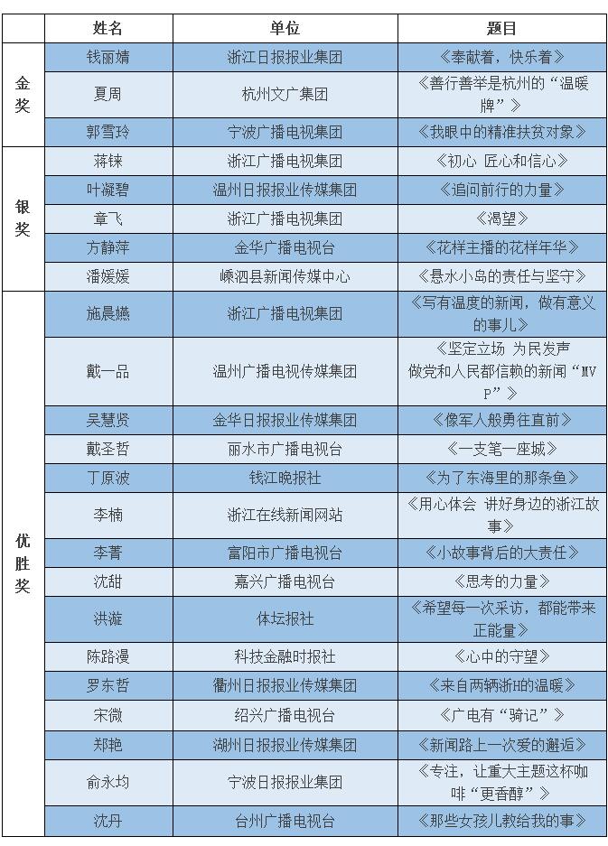 浙江省新闻界“好记者讲好故事”演讲比赛获奖名单