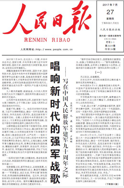 原标题:人民日报政文部庆祝建军90周年报道:以战斗姿势打一场胜仗