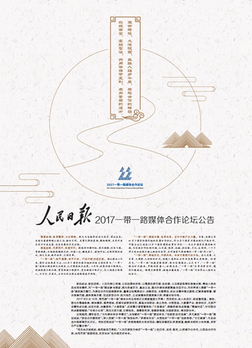 在距离论坛开幕的一个月前,《人民日报》8月18日曾整版刊登“人民日报2017一带一路媒体合作论坛公告”: