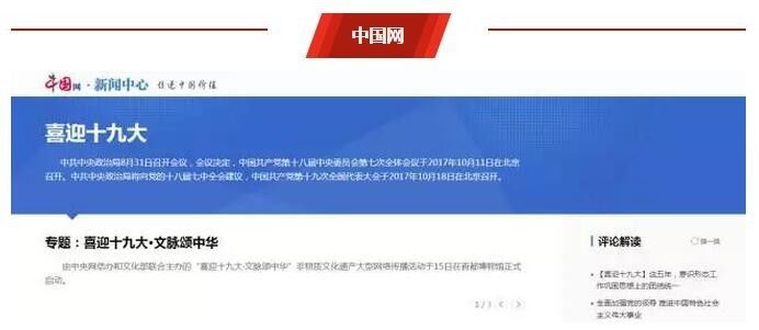 中国网以易于理解的时间轴方式综合了“数说”“喜迎十九大·文脉颂中华”等不同系列的丰富报道,简洁的时间节点十分具有当下年轻人喜爱的互联网风格。同时,网页右侧增添了“评论解读”“新闻图集”等小版块,摘取精选文章,方便网友选择阅读。