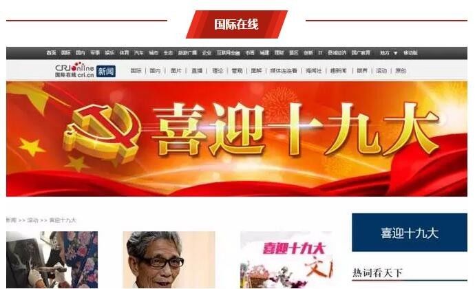 国际在线在新闻版块以新闻滚动的方式,在“喜迎十九大”专题页面展示最新相关活动报道,如“喜迎十九大·文脉颂中华”系列报道、“理上网来·喜迎十九大”系列图解新闻、“迎接党的十九大”系列数据新闻等,报道种类丰富。