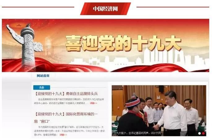 中国经济网专题页面风格稳健,“迎接党的十九大”系列报道从经济的角度报道我国五年来的卓越成就,另外,网页设置了“辉煌中国”“砥砺奋进的5年”“治国理政进行时”等小专题,还配有“十九大代表产生全过程”等科普性质的图解新闻,使人眼前一亮。