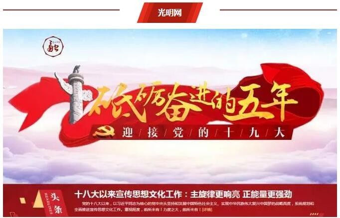 光明网推出“砥砺奋进的五年 迎接党的十九大”专题页面,创新推出“光明推荐”“高校足迹”“典型案例百集连播”“巡视利剑”“大国外交”“法治中国”“名家诵读”“将改革进行到底”等内容丰富的版块,全面介绍我国辉煌的五年成就,同时还推出“迎接党的十九大‘辉煌的五年’图片征集活动”,以见证发展的美图喜迎党的十九大。