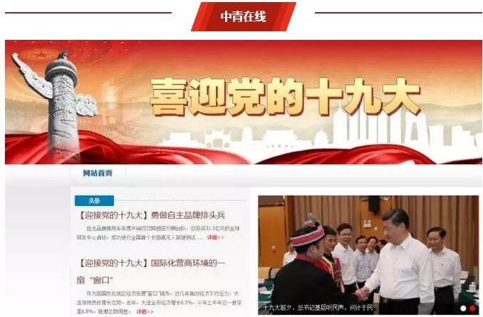 中青在线与中国青年报联合推出“喜迎十九大 砥砺奋进的五年”专题页面,包含“精准扶贫驻村调研”“重大工程成效显著”“改善民生实事求是”“法治中国砥砺前行”等版块。同时,一直关注青年话题的中青在线推出“@青年”系列报道,从青年角度看我国的发展成就,角度更贴近年轻网民。
