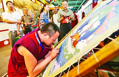 特色文化产业传承弘扬中华优秀传统文化,助力民族地区文化产业发展,促进群众就业增收。图为藏羌彝文化产业走廊扶持项目唐卡绘制现场。