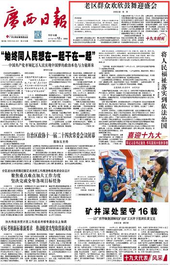 《广西日报》10月12日在头版开设“十九大时光”栏目