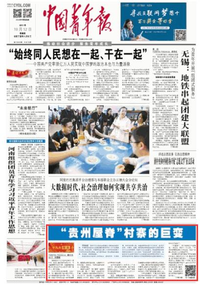 《中国青年报》10月12日在头版开设“十九大时光”专栏