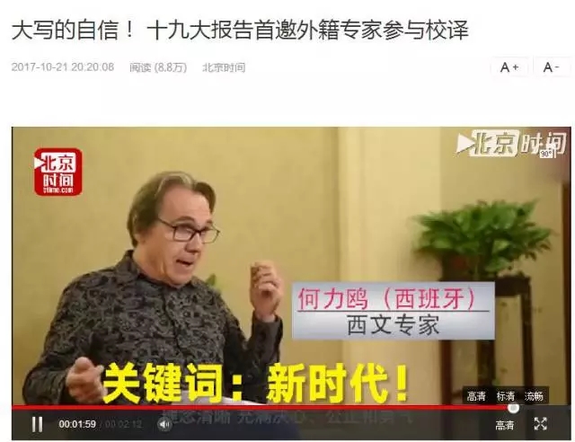 北京时间还将镜头对准参与十九大报告译校工作的“外国面孔”,挖掘自改革开放以来,针对中国首次邀请外籍专家参与党代会报告外文版校译工作这一新闻亮点,推出《大写的自信! 十九大报告首邀外籍专家参与校译》和《金发美女首译十九大报告:将中国情感传递世界》短视频,从另一个角度拓展十九大报道题材。