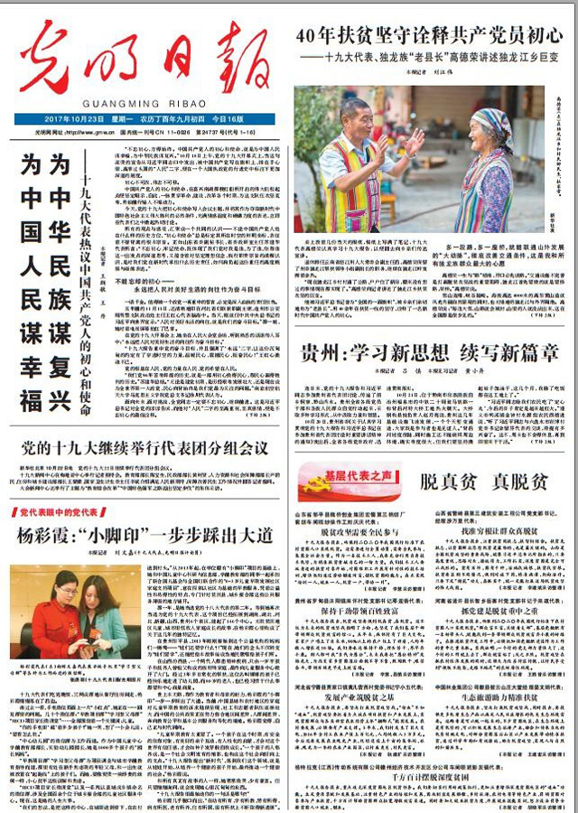 《光明日报》10月23日1版刊发特稿《为中国人民谋幸福 为中华民族谋复兴》