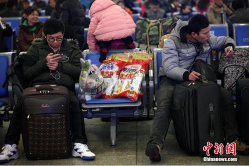 资料图:铁路青岛站候车室内,玩手机的“低头族”随处可见。徐崇德 摄
