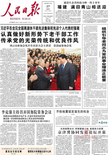 2014年在会见全国离退休干部先进集体和先进个人代表时强调,要在全社会广泛形成尊重老同志、爱护老同志、学习老同志的良好社会氛围。2016年底,再次对全国老干部工作作出重要指示。