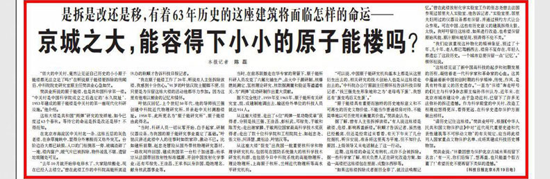 近年来,关于历史文物古迹保护和拆迁的报道屡见不鲜,该作品就是其中一篇典型报道。难能可贵的是,该作品虽然是围绕一栋楼而形成的新闻热点,但并不纠结于此楼的存与废,而是挖掘出关注科技历史遗存保护这一新课题,探讨如何在保留历史遗存与推进城市建设中寻求平衡,体现了科技与人文的结合,立意高远。