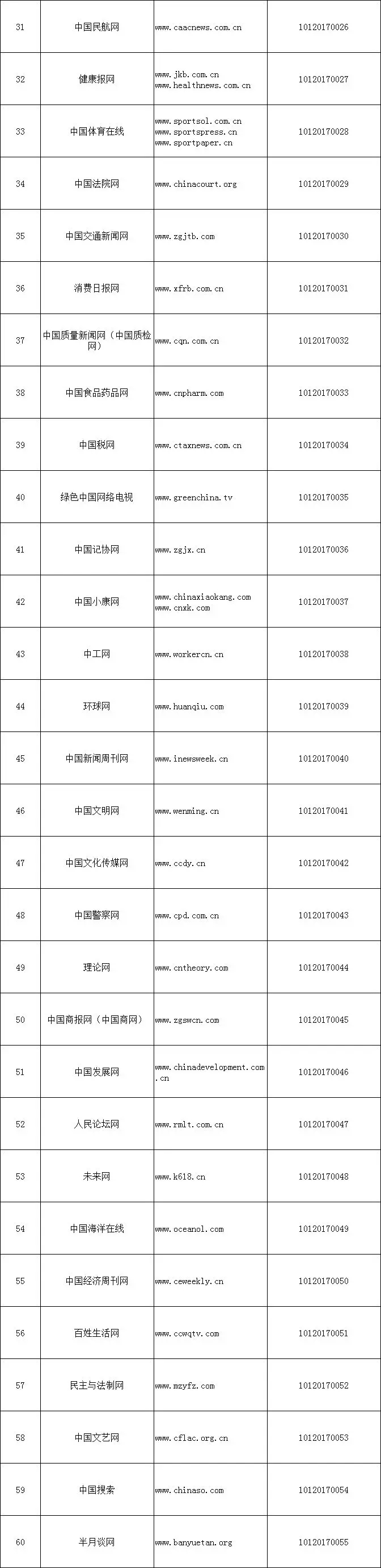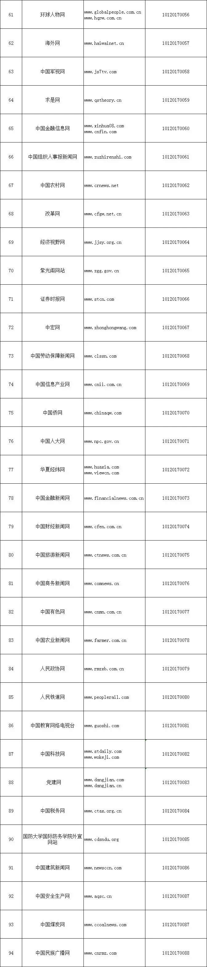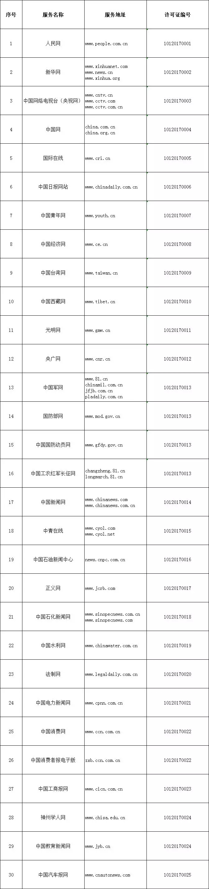 一、获得互联网新闻信息服务许可的互联网站名单(共94个)