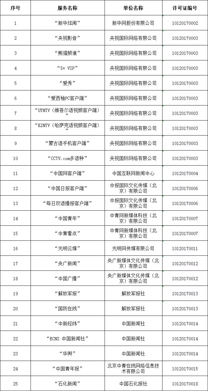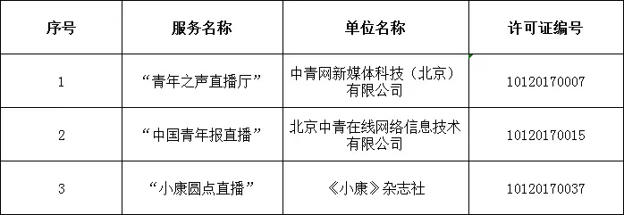 八、获得互联网新闻信息服务许可的网络直播名单(共3个)