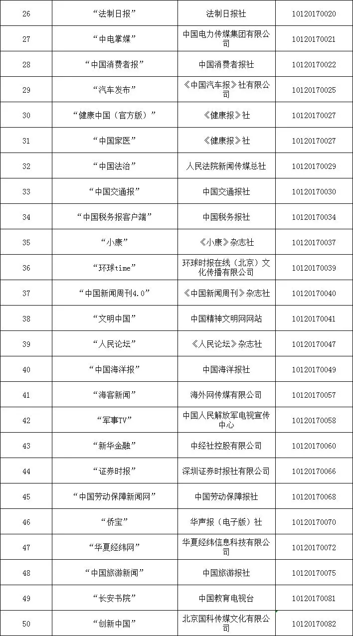 二、获得互联网新闻信息服务许可的应用程序名单(共50个)