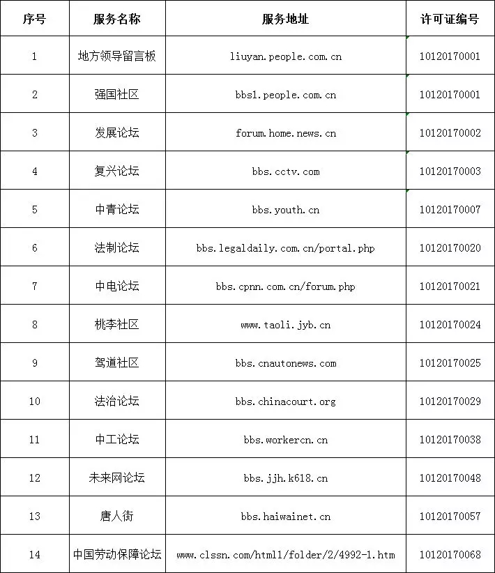 三、获得互联网新闻信息服务许可的论坛名单(共14个)