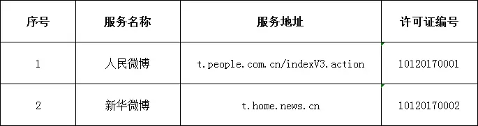 五、获得互联网新闻信息服务许可的微博客名单(共2个)