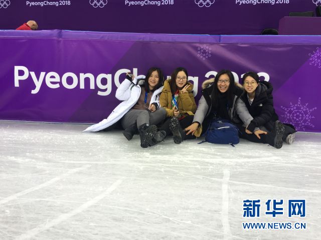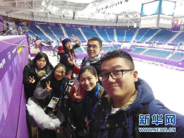 新华社花样滑冰、速度滑冰项目文字记者在赛场合影。