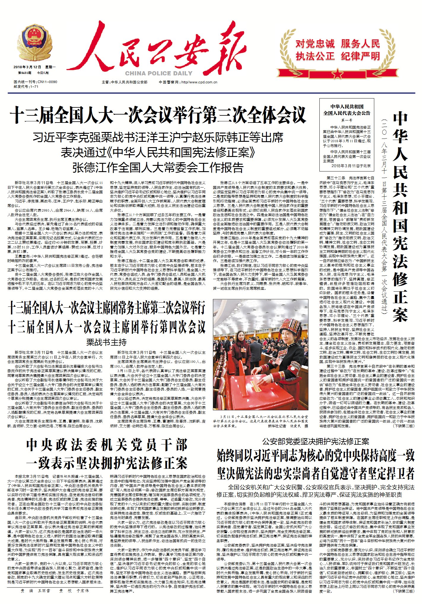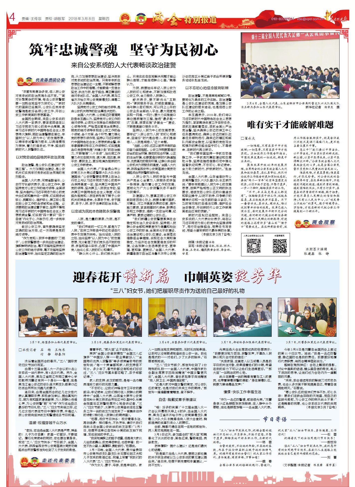 人民公安报还组织公安系统代表委员和广大公安民警就两会重要议题旗帜鲜明地连续发声,展现人民公安忠诚本色。目前已组织刊发推送了公安部党委、公安系统两会代表委员、公安部机关干部、各地公安民警、公安现役部队官兵、公安院校师生,拥护中共中央关于修改宪法部分内容的建议、拥护中共中央关于深化党和国家机构改革的决定、维护和贯彻军委主席负责制、拥护宪法修正案及国务院机构改革方案等重要稿件,充分反映了公安部党委和广大公安民警、公安现役部队官兵忠诚核心、拥戴核心、维护核心、捍卫核心,坚决拥护中央决策部署的立场、态度和心声。