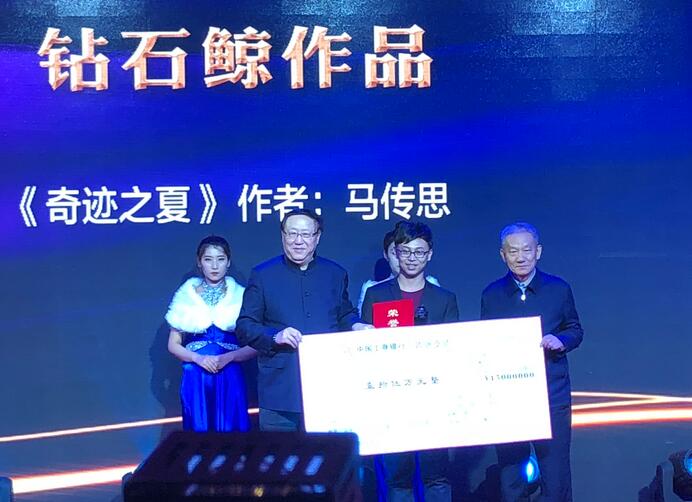 3月15日,由大连出版社主办的“保卫想象力”2018“大白鲸”原创幻想儿童文学年度盛典在大连举行。会上揭晓了2017“大白鲸”优秀作品获奖名单,其中作者马传思的作品《奇迹之夏》获得最大奖项——“钻石鲸”奖,并在活动现场与大连出版社签约。中国作家协会副主席、作协儿童文学委员会主任高洪波,中国出版协会常务副理事长邬书林,中国书刊发行业协会理事长艾立民,中国编辑学会会长郝振省,大连出版社社长兼总编辑刘明辉等出席。