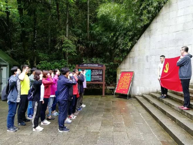 在井冈山革命烈士纪念碑前重温入党誓词